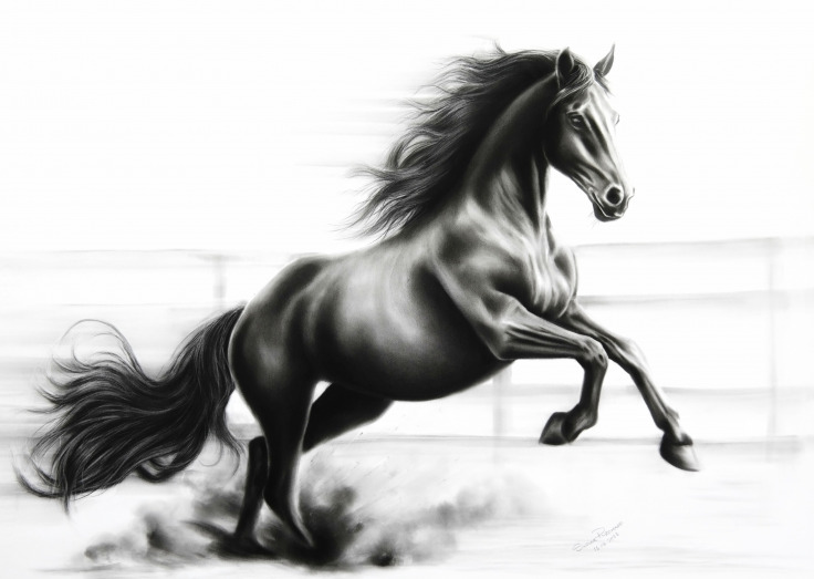 This work explores power through motion rather than confrontation. The horse is rendered mid stride, suspended between force and control.